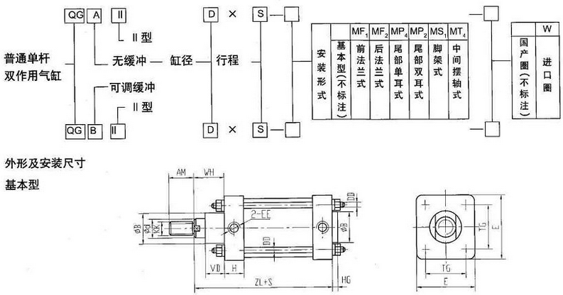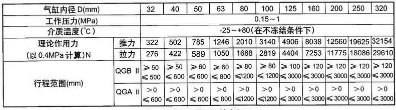*QGB||带可调缓冲,QGA||无缓冲装置。活塞杆表面镀铬。