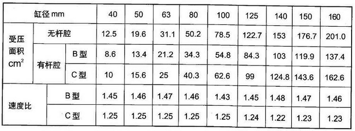 油压缸有效受压面积及速度比