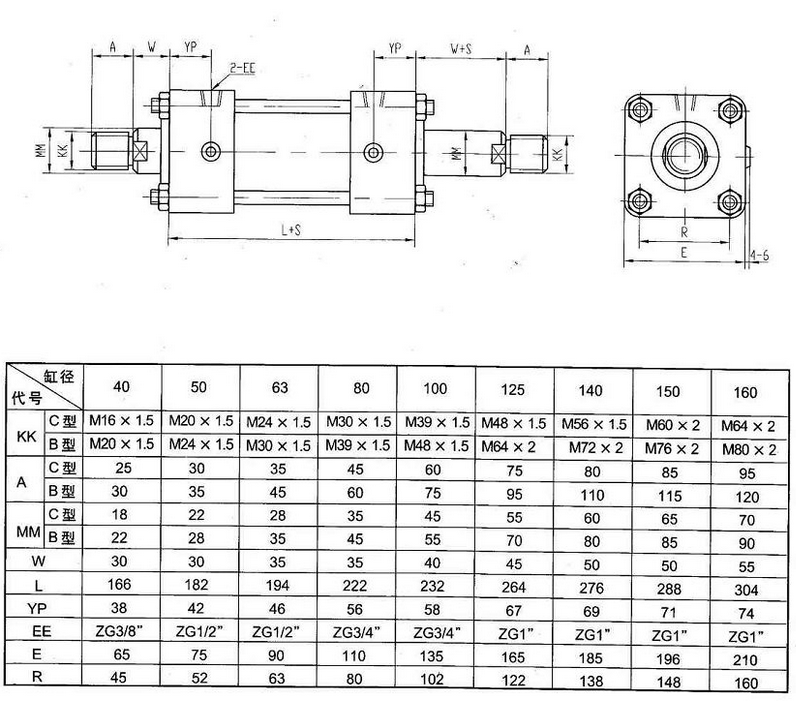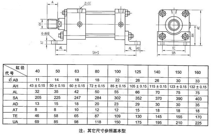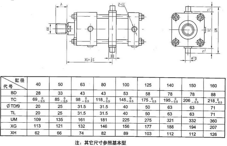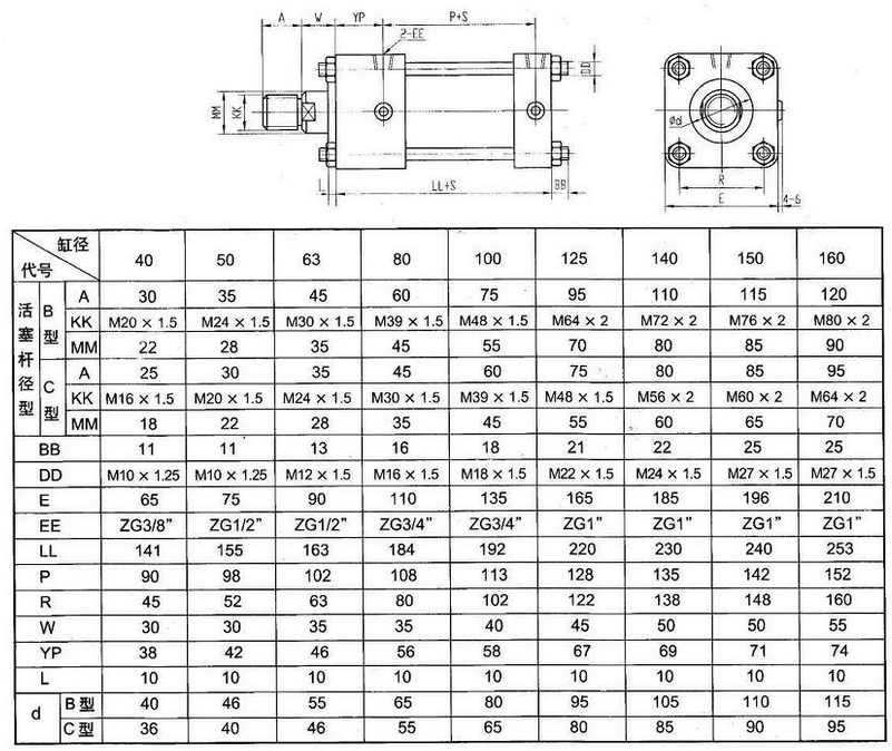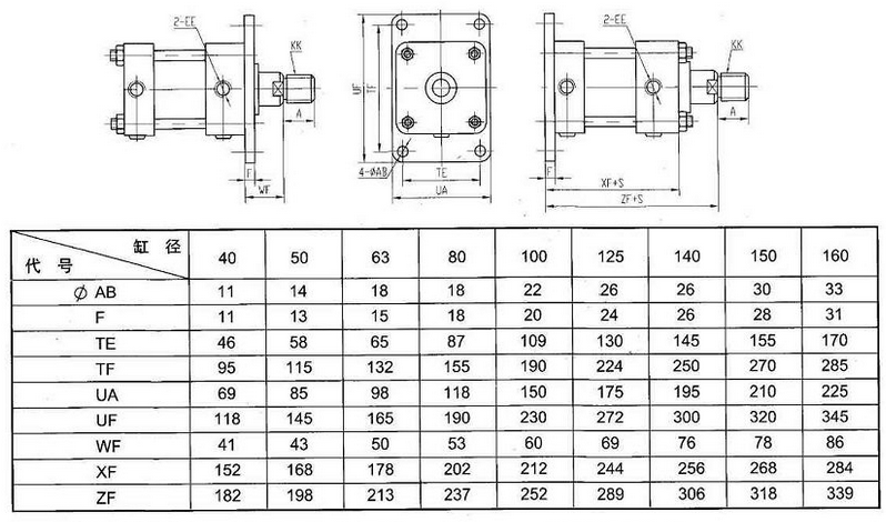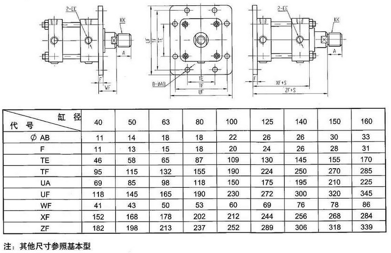 本产品可与采用日本JISB8354-1992标准安装形式及尺寸的油缸直接互相使用。